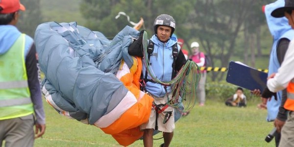 ![Dede Supratma Juara Kelompok Umum Kejuaraan Dunia Ketepatan Mendarat Paralayang VII FAI 2015 (Foto: Kompas.com)]()