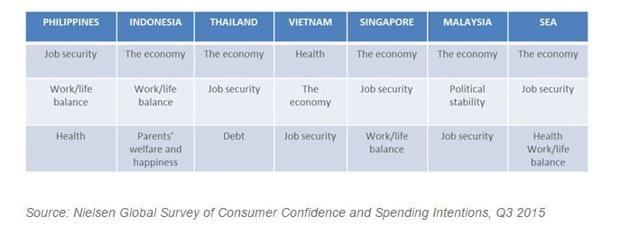 Pada kuartal keempat ini, yang menjadi kekhawatiran utama konsumen Indonesia adalah Keadaan Ekonomi, Keseimbangan antara Hidup dan Pekerjaan, Kesejahteraan dan Kesehatan Orang Tua serta Kesehatan. Namun angkanya sendiri masih relatif stabil, bila dibandingkan dengan kuartal sebelumnya.