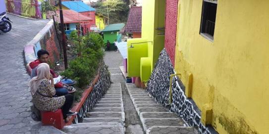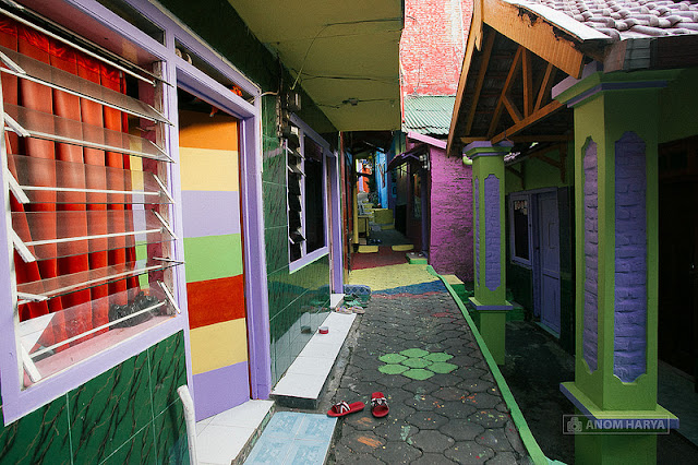Warna merah, kuning, hijau, dan biru menjadi warna-warna dominan kampung yang terletak di Kelurahan Jodipan, Kecamatan Blimbing, Kota Malang tersebut. Karena keindahan perpaduan warna yang ada kampung ini sering dijadikan tempat untuk berfoto-foto.