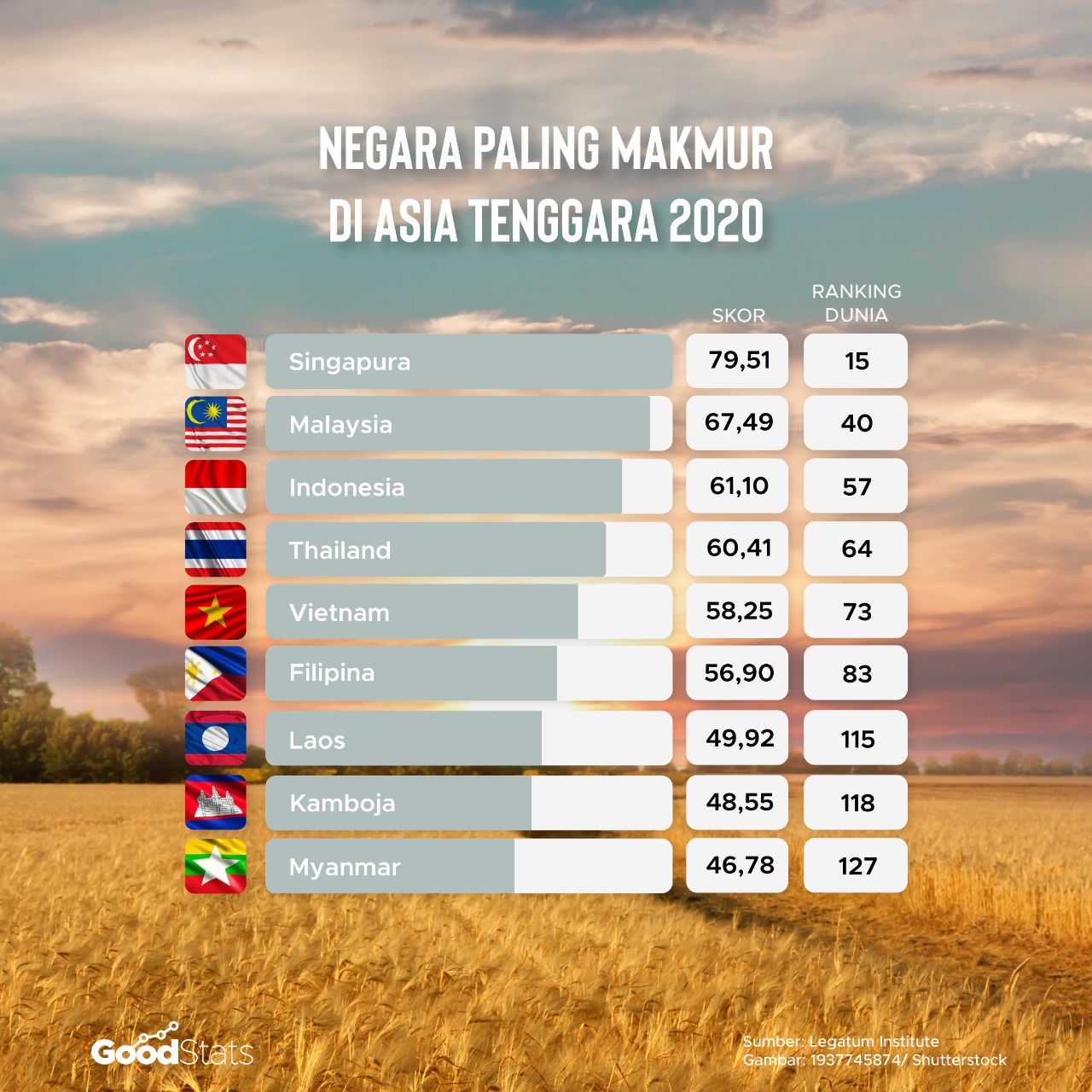 Legatum Institute kembali mempublikasikan laporan World Prosperity Index atau Indeks Kemakmuran Dunia. Indeks ini mengukur kemakmuran pada 167 negara di dunia dengan rentang skor 1-100. Semakin tinggi skor yang diperoleh, semakin makmur negara tersebut.