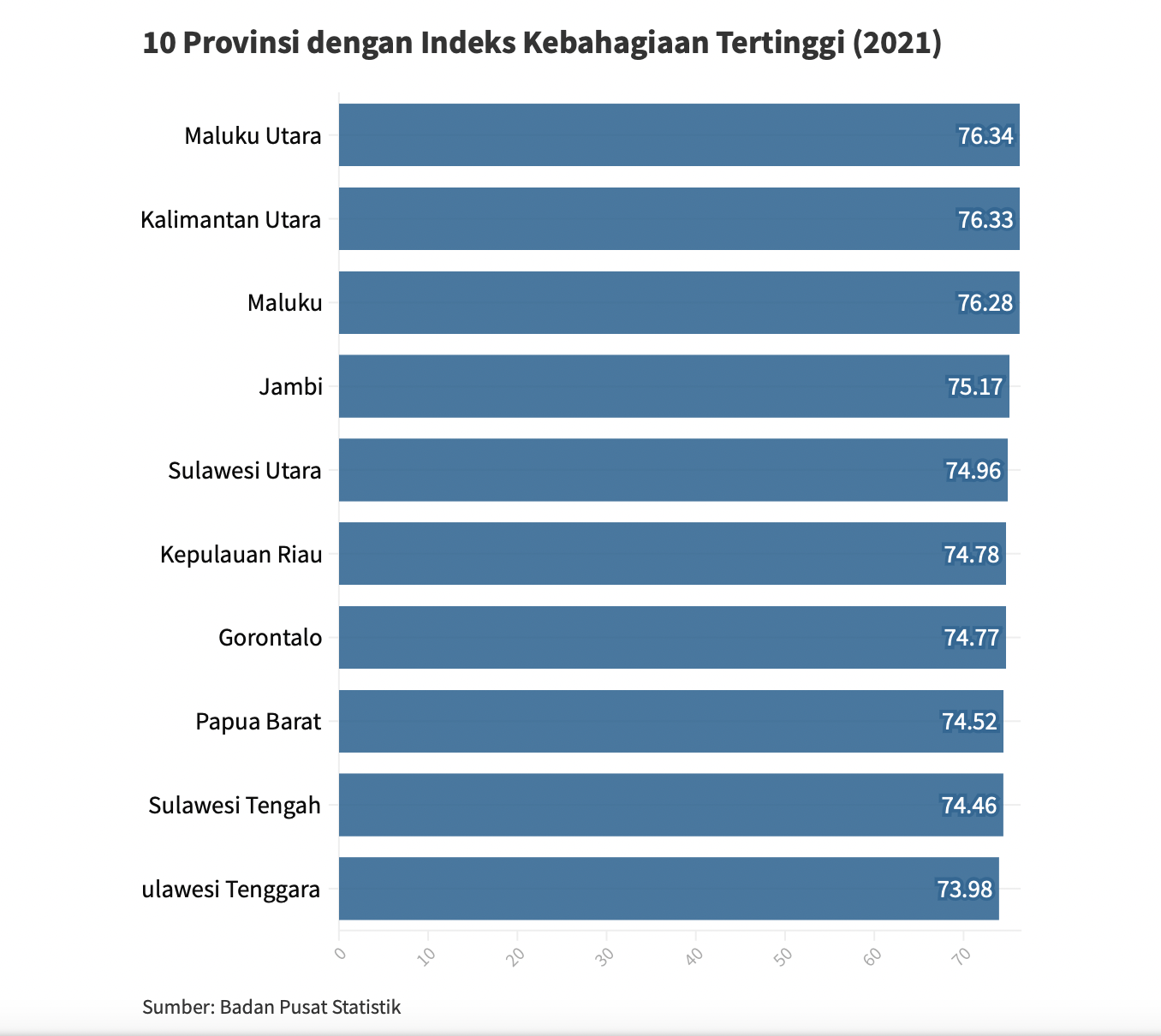 Perlu diketahui bahwa sejak 2013, BPS memang telah merilis indeks kebahagiaan di sejumlah daerah di Indonesia. Data terakhir yang dikeluarkan adalah indeks kebahagiaan tahun 2021.