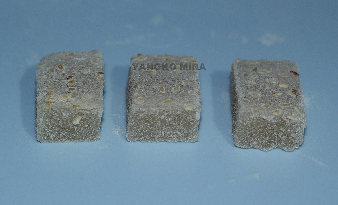 Kotak dan kenyal. Itulah ciri khas yangko. Ya, yangko punya wujud kotak seperti batu bata berukuran kecil namun bertekstur kenyal. Tampilannya pun biasanya berwarna-warni.