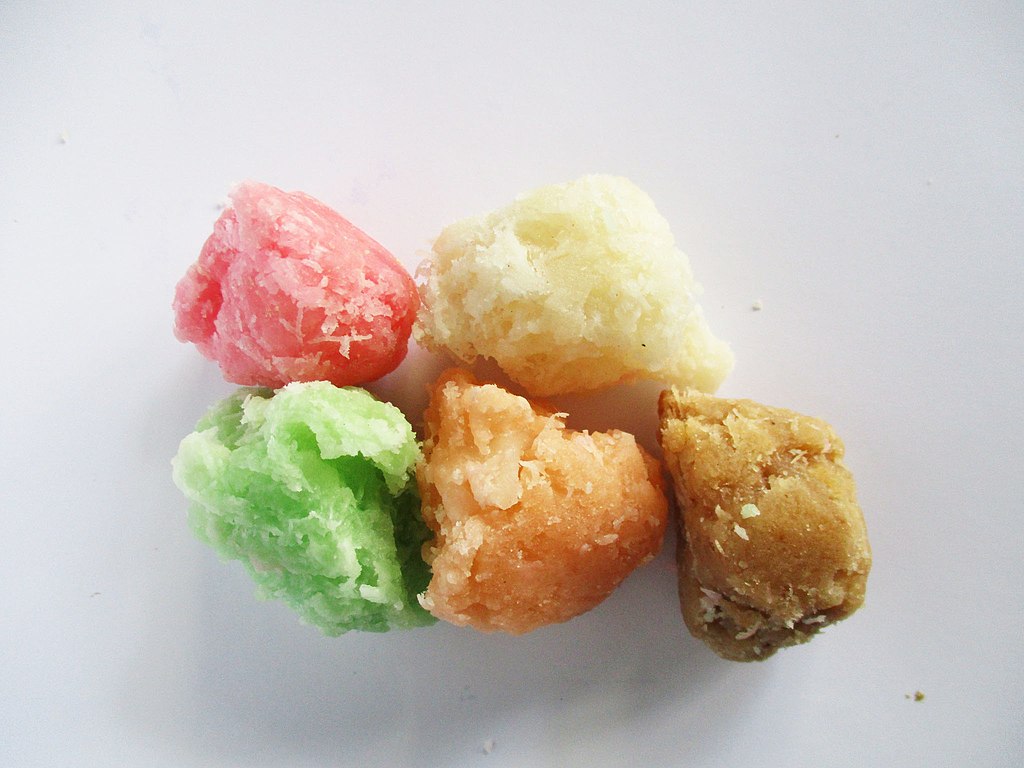 Cara membuatnya, daging kelapa direndam terlebih dahulu di dalam air kelapa hingga tidak ada minyak yang tertinggal. Daging kelapa yang sudah melalui proses perendaman kemudian dicuci agar bersih dan selanjutnya diparut. Hasil parutan kelapa selanjutnya di dimasak sambil dicampur gula dan pewarna. Setelah matang, olahan tinggal didinginkan dan dibentuk.