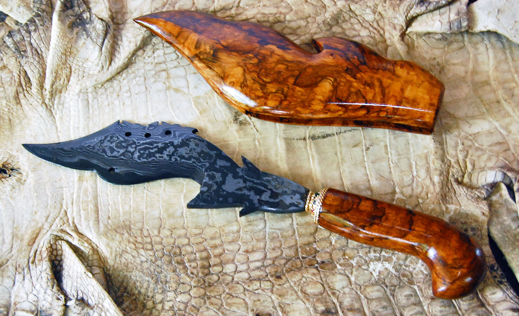 Belati ini biasanya dihiasi dengan bulu Kasuari pada bagian gagangnya dan menambahkan ukiran yang menggambarkan manusia dan hewan.