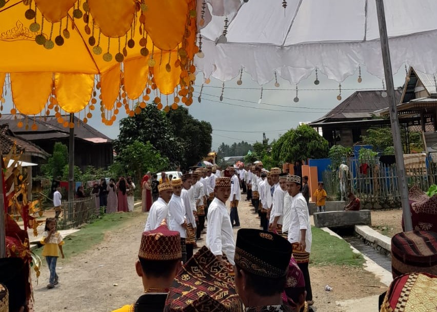 Kemudian jika pengantin adalah anak dari tokoh adat, maka acara arak–arakanya akan sangat ramai karena pengantin laki–laki dan pengantin wanita diarak secara bersamaan, diiringi piccak khakot (tari pedang) dan neknek hu yang dilakukan oleh mekhanay (bujang) dengan diharuskan memakai baju warna putih, kopiah tapis dan sarung tapis, taklupa diringi musik khas Lampung (tala / gong) yang dilakukan oleh bapak – bapak dan rebana yang ditabuh oleh Ibu – ibu. Setelah selesai mengarak pengantin biasanya rombongan bujang, ibu – ibu, dan bapak – bapak tadi kembali melakukan hal yang sama untuk menjemput sultan ( tokoh adat yang paling tinggi ).