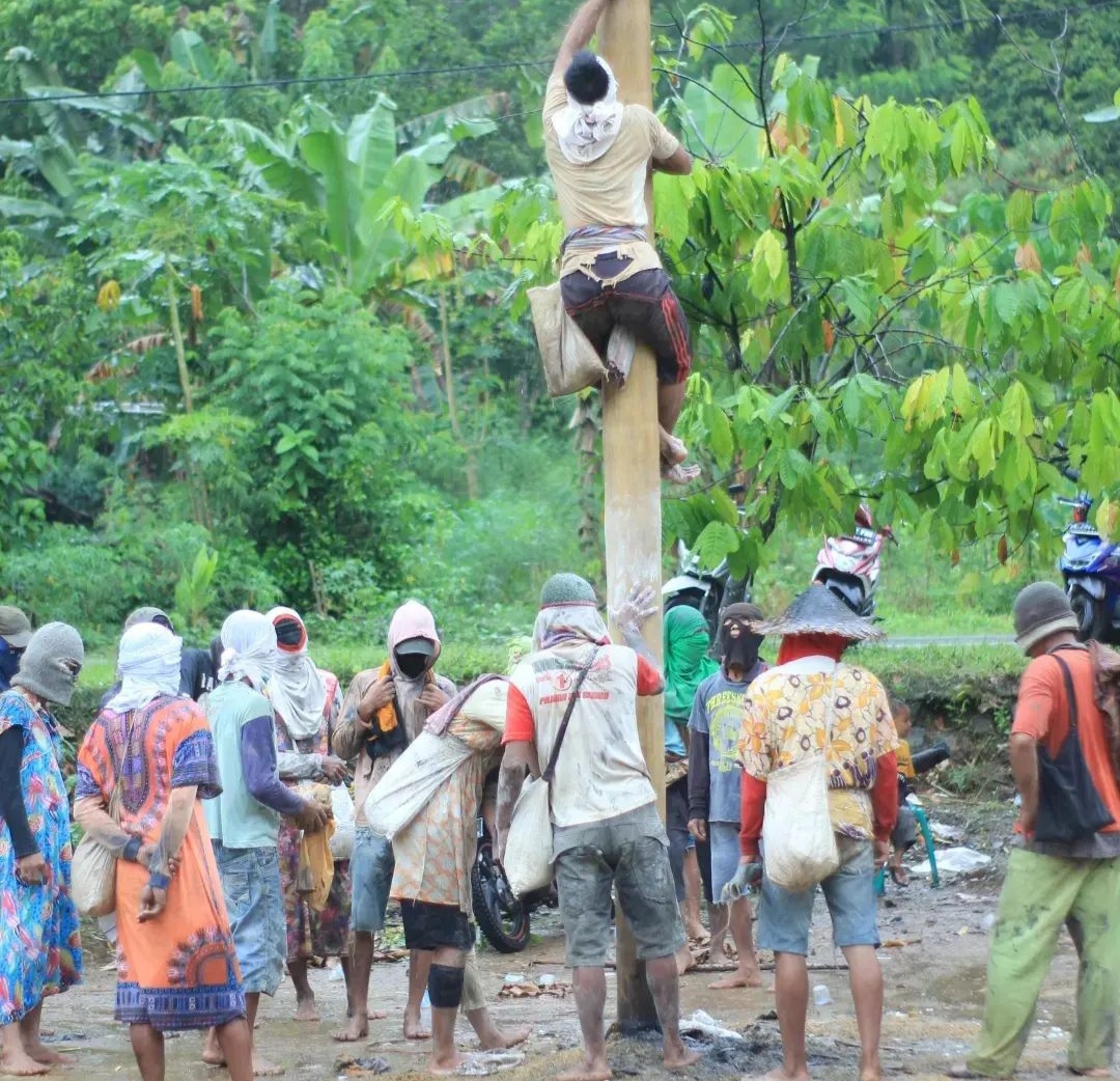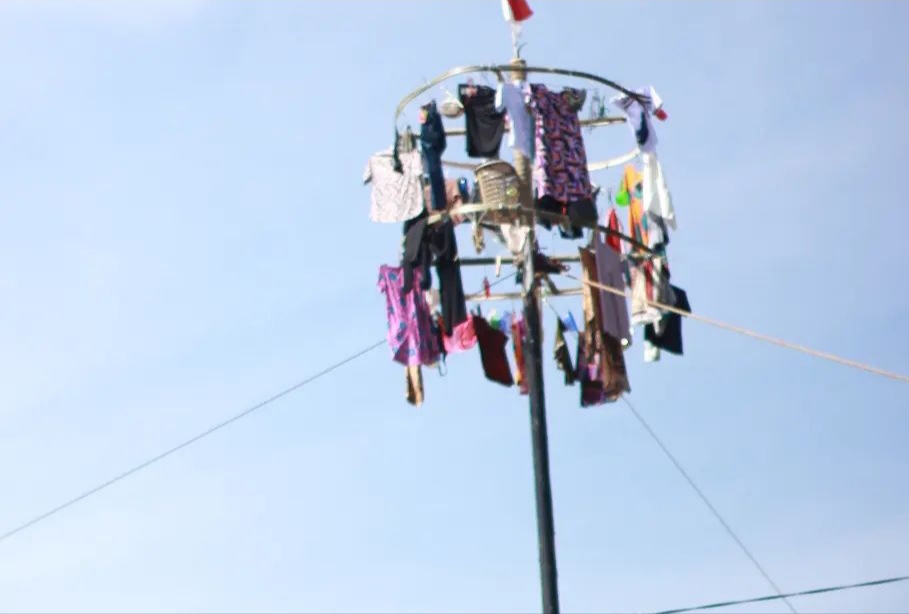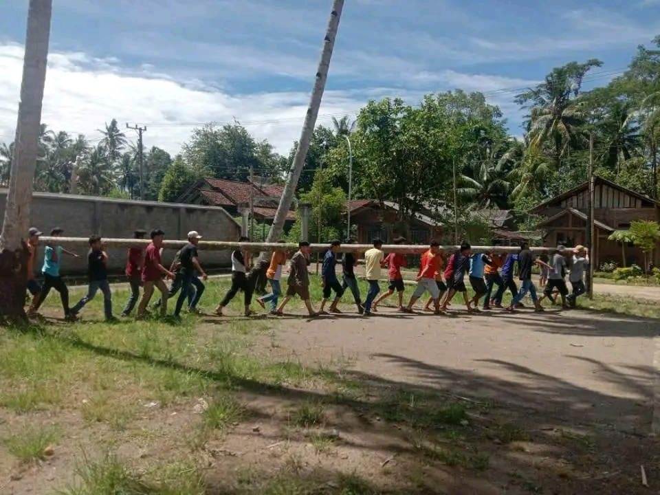 Setelah lingkaran bambu selesai maka kordinator perlengakapan akan belanja pakaian atau perabotan sebagai hadiah panjat pinang. Kemudian setelah semua persiapan telah siap seperti pohon pinang halus dan seluruh hadiah telah di gantung, maka selanjutnya masyarakat akan berbondong - bondong datang ke tempat acara untuk menegakan pohon pinang tersebut dimulai dari orang dewasa, bujang, orang tua dan termasuk anak - anak. Setelah tegak maka selanjutnya hal yang harus dilakukan adalah menunjuk orang untuk memberi oli di pohon pinang tersebut.