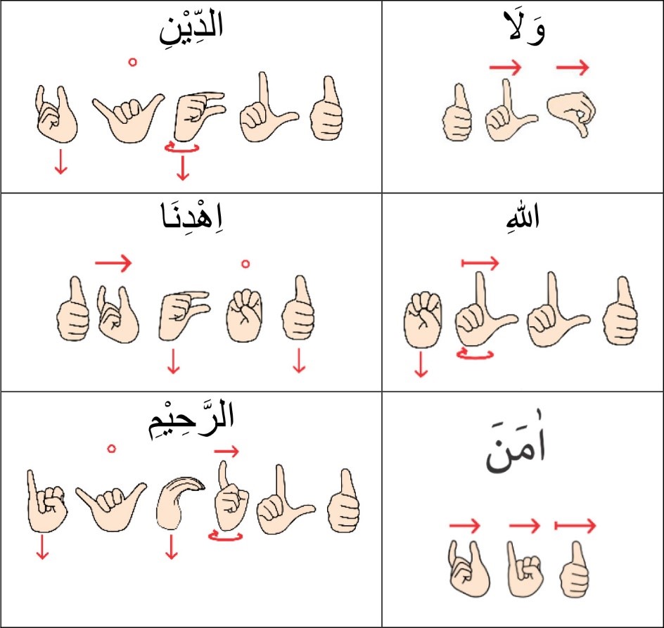 2. Tangan yang digunakan untuk berisyarat adalah tangan kanan si pembaca Al-Qur’an. Jika tidak memungkinkan menggunakan tangan kanannya, maka diperkenankan menggunakan tangan kirinya, namun arah isyaratnya berlawanan dengan pengguna tangan kanan, berlaku seperti pada cermin/ mirroring.