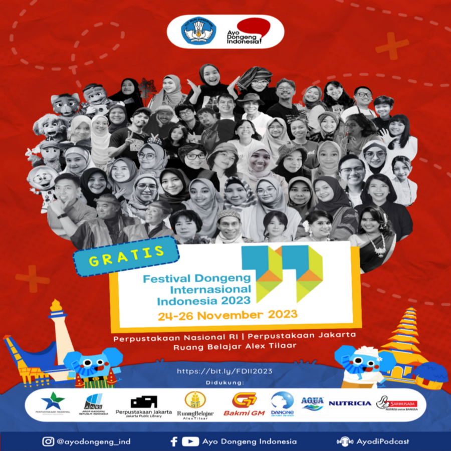 #FDII2023 terlaksana atas dukungan Kemendikbudristek, Perpustakaan Nasional Indonesia, Perpustakaan Jakarta, Bakmi GM, Danone Indonesia, AQUA, Nutricia, Sari Husada, Whitelab, Yuasa, Erlangga For Kids, Noura, Domikado, Sunskrips DAR! Mizan, dan Yayasan Alika Mulia Sejahtera.