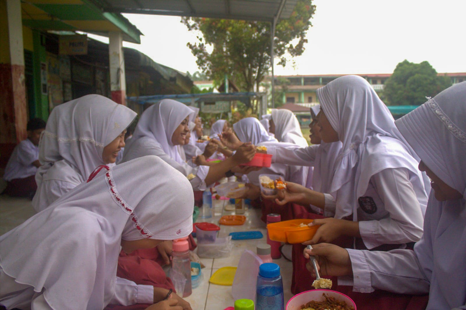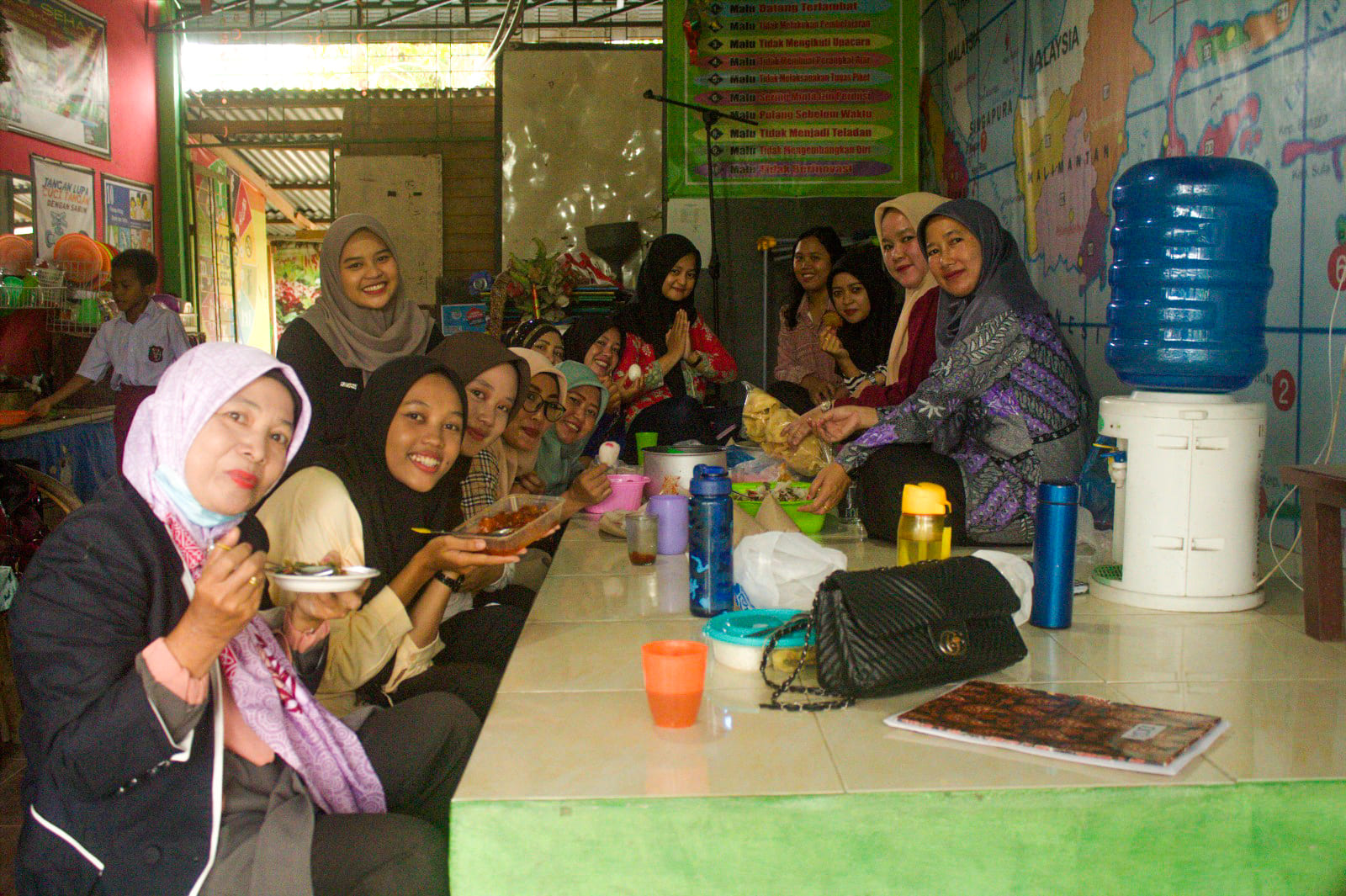 Makan bersama antara guru dan siswa menjadi momen yang hangat dan penuh makna, di mana tidak hanya makanan yang disantap, tetapi juga kebersamaan dan kehangatan hati yang terasa.