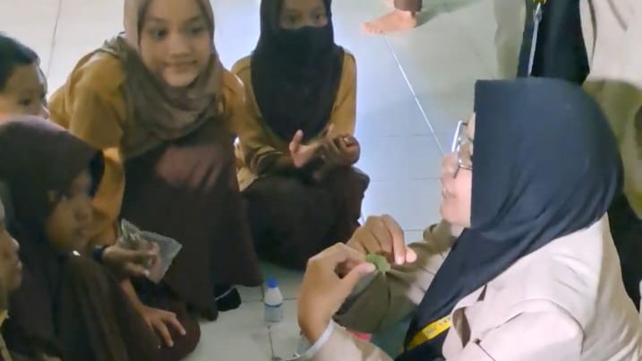 Program ini dipimpin oleh Ihsanti Tsania Fajriati dan Septiana Audina, yang mengajarkan siswa-siswi kelas 5 tentang pengelompokan tanaman berdasarkan keberadaan berkas pengangkut melalui media herbarium.