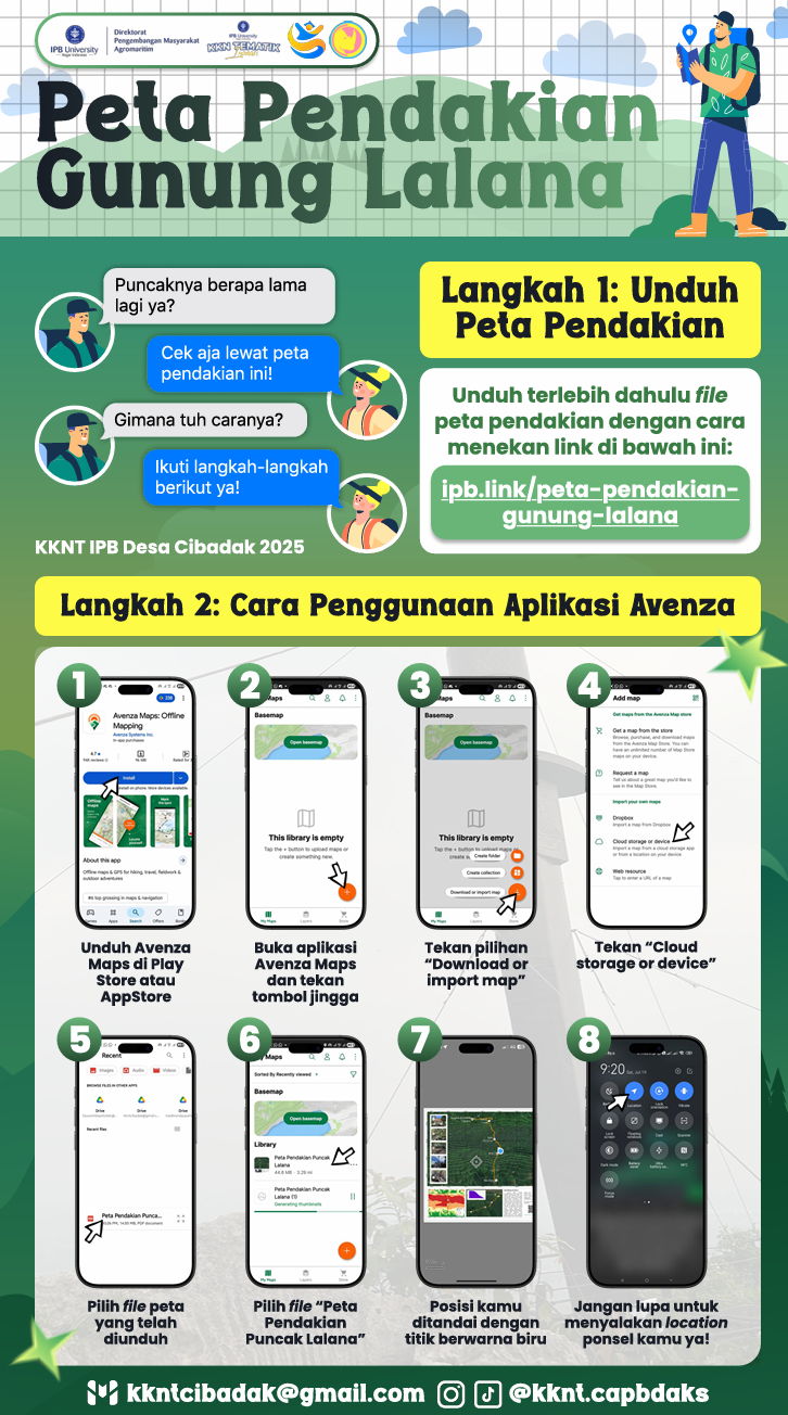 Berangkat dari kesadaran inilah, tim KKN-T IPB 2025 Desa Cibadak menggagas pembuatan Peta Jalur Pendakian Puncak Lalana, sebuah langkah kecil dengan dampak besar untuk mengenalkan potensi lokal sekaligus mendorong tumbuhnya ekowisata yang edukatif, aman, dan lestari.