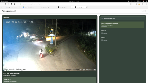 Melalui sistem ini, perangkat desa maupun pihak keamanan lokal dapat melakukan pemantauan secara real-time dari berbagai perangkat seperti laptop, tablet, maupun smartphone. Selain meningkatkan rasa aman masyarakat, rekaman dari CCTV ini juga dapat dimanfaatkan untuk evaluasi kegiatan, dokumentasi, serta deteksi dini terhadap potensi gangguan keamanan.