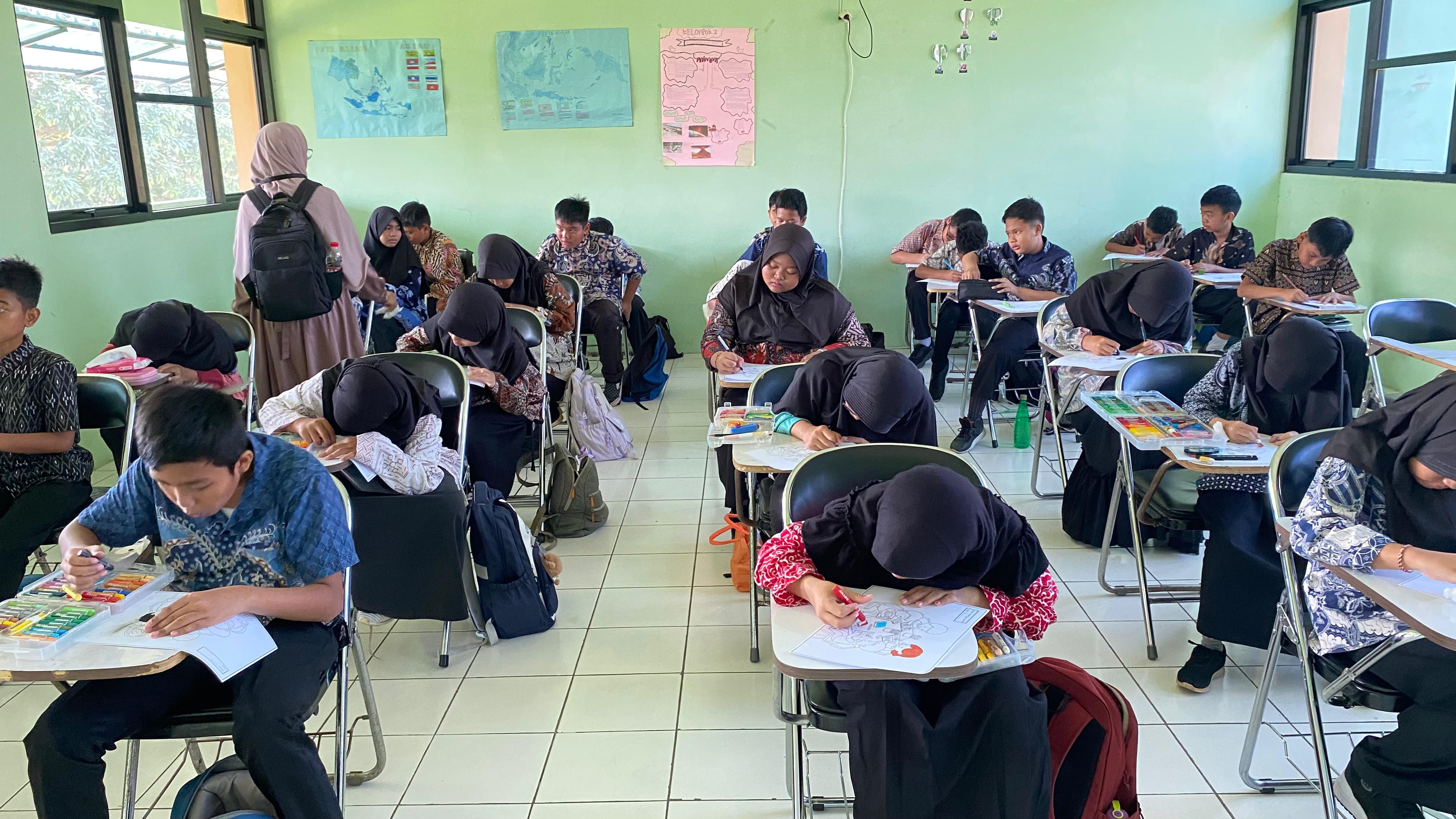 Salah satu kegiatan utama adalah Visitasi Sekolah Literasi. Di sini, mahasiswa hadir langsung di kelas untuk membawakan pengalaman belajar yang berbeda. Anak-anak diajak membaca bersama, kemudian menulis rangkuman sederhana tentang isi cerita.