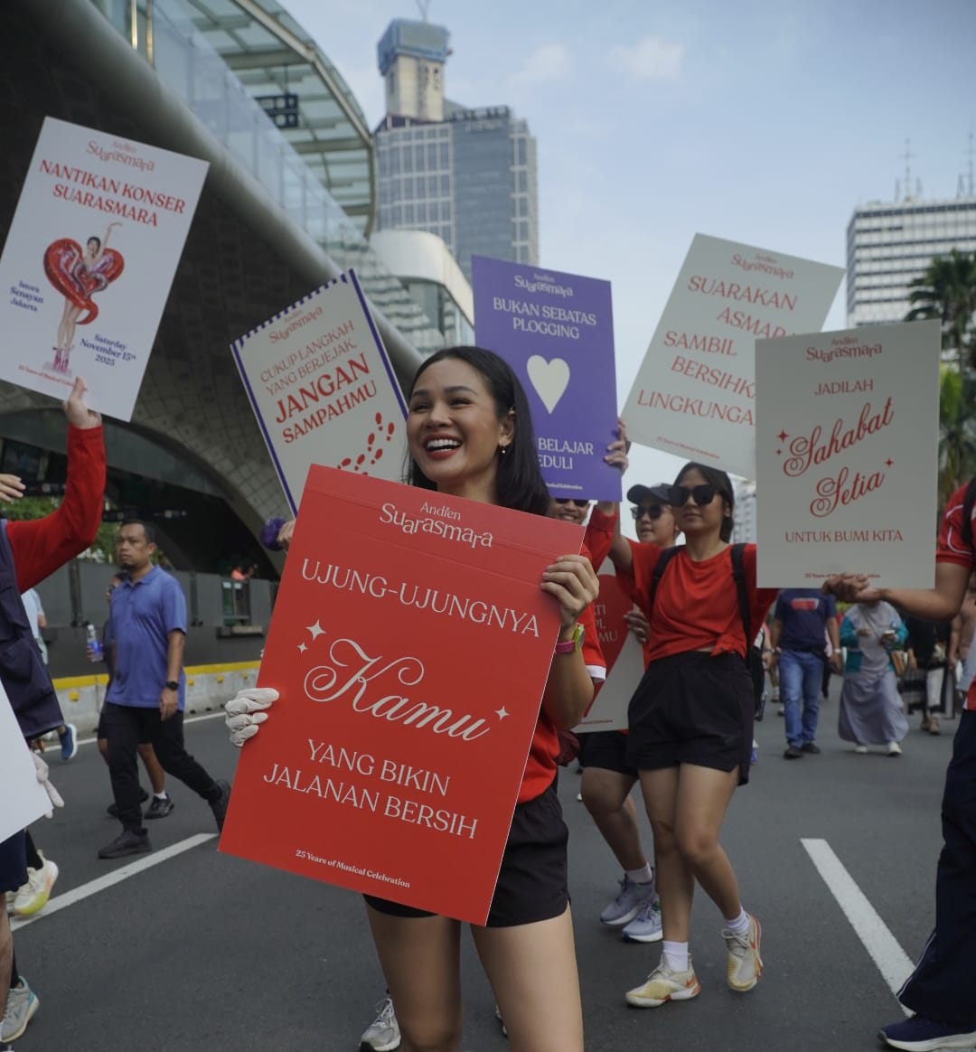 Menyambut konser Suarasmara yang akan datang, Andien Aisyah—musisi sekaligus Eco Living Advisor Rekosistem—mengajak masyarakat untuk memulai perayaan dengan cara yang bermakna dengan memungut sampah sambil joging atau plogging.