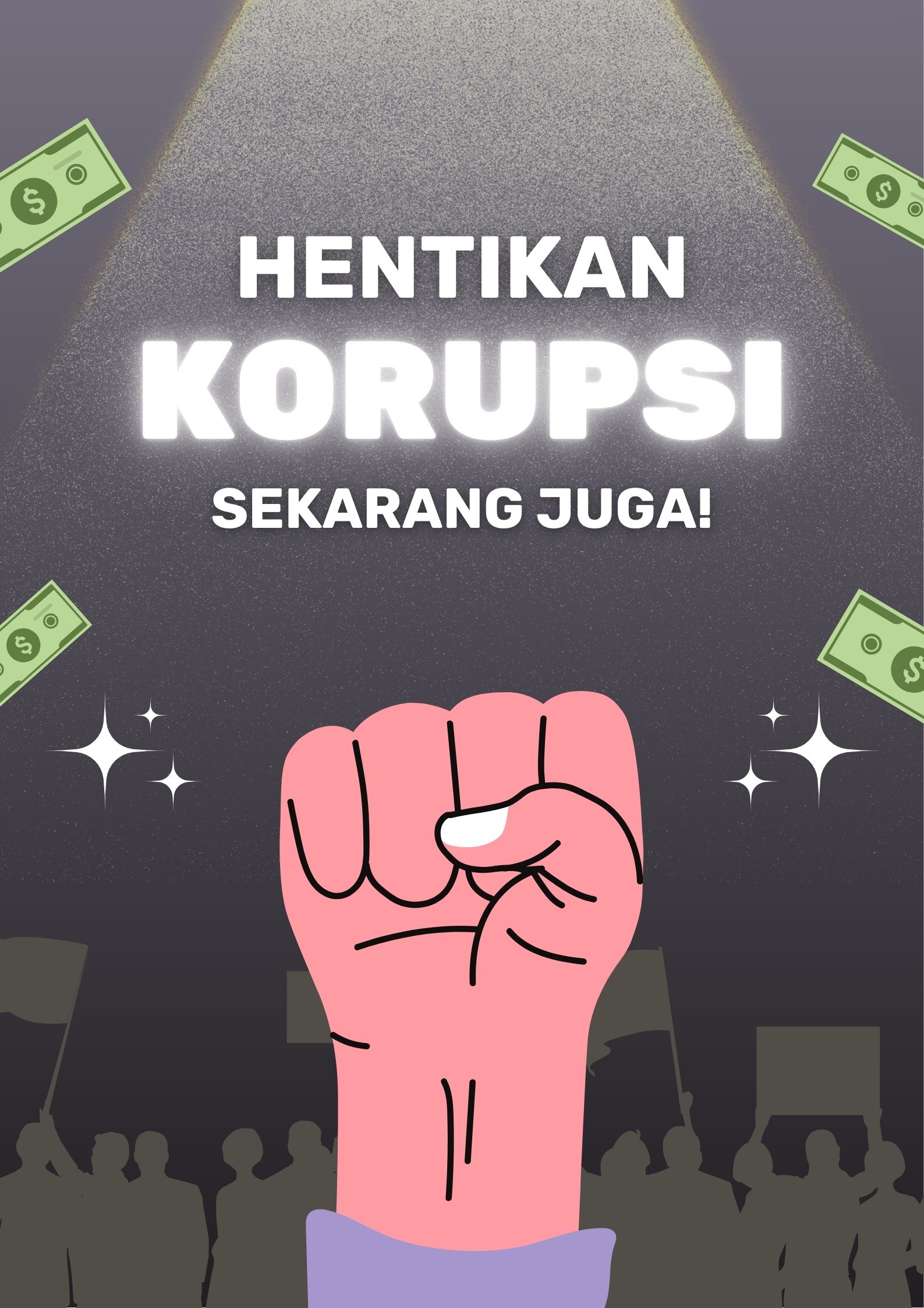 Poster Hitam dan Merah Ilustrasi Hentikan Korupsi Sekarang Juga