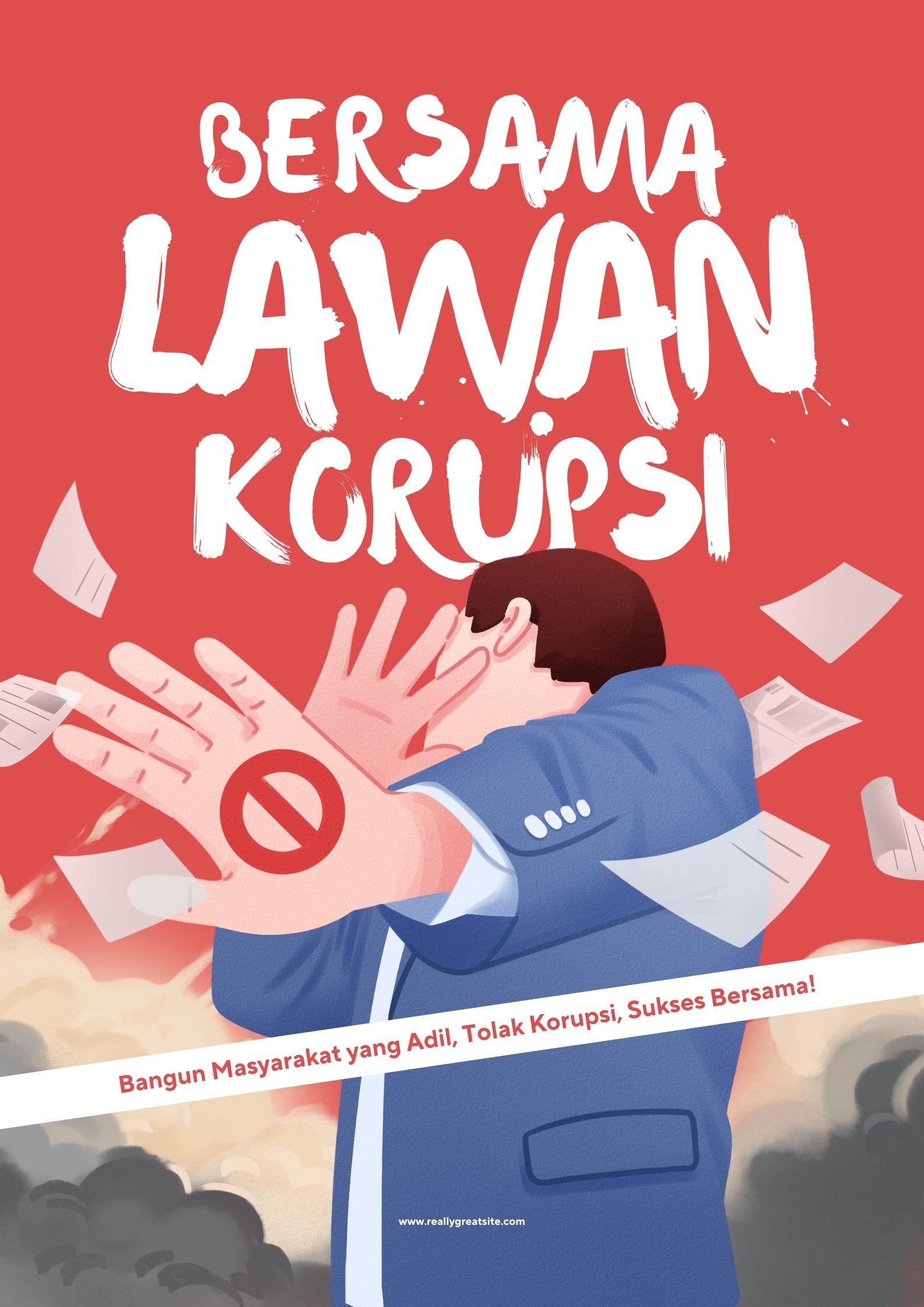Poster Bersama Lawan Korupsi Ilustratif Merah dan Putih
