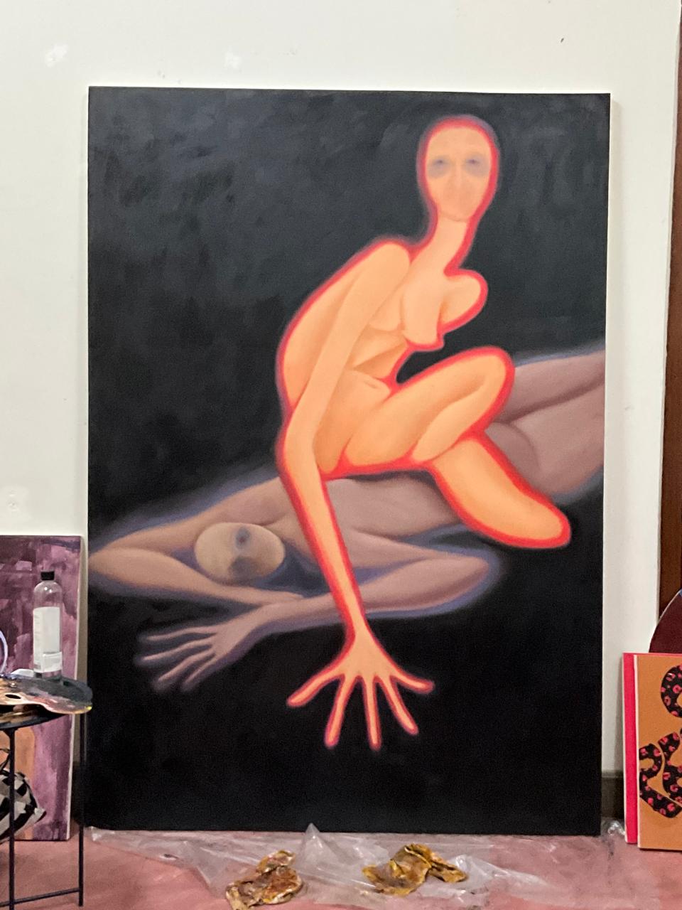 Lukisan terbesarnya, berukuran 200x140 cm, kanvas ini mulanya dibawa ke Bolo Space, masih benar-benar kosong. Pada lukisan ini ia benar benar menentukan arah lukisannya, dari nol. Ketika ia masuk ke Kamar Dengar Bolo Space (ruang yang digunakan untuk open studio).